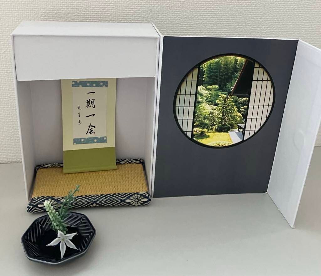 どこでもお手軽に日本の伝統的な和室の一部、「床の間」を飾れるミニュチュアドールハウスセットになります。